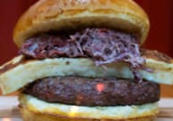 1 Blend Bovino 150g, 2 Fatia de Queijo cheddar, Pão brioche, Costela desfiada, Geleia de Pimenta com toque especial picante.